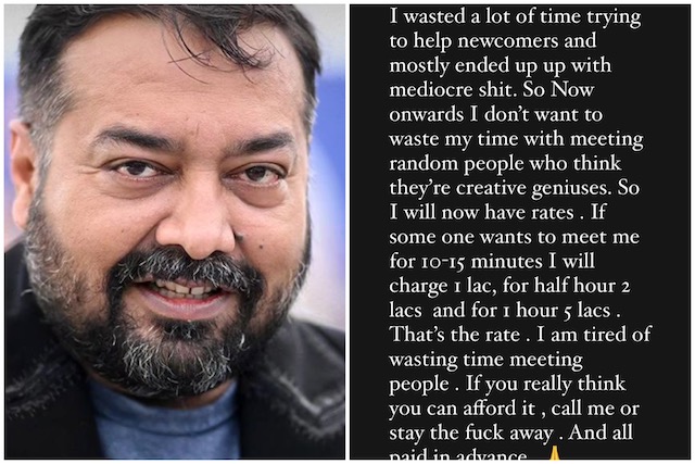 कैप्शन में अनुराग ने लिखा, "और मेरा मतलब यह है... मुझे टेक्स्ट या डीएम या कॉल न करें। भुगतान करें और आपको समयमिलेगा। मैंने कोई चैरिटी नहीं खोल रखा है और मैं शॉर्टकट ढूंढने वाले लोगों से थक गया हूं।"