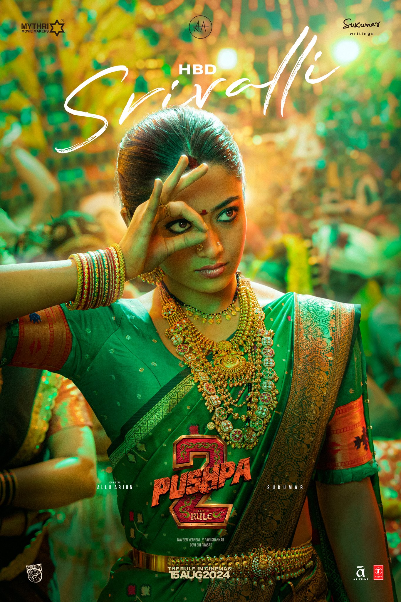 मैत्री मूवी मेकर्स के सोशल मीडिया हैंडल में पोस्टर को शेयर किया, रश्मिका का ये फर्स्ट लुक शेयर करते हुए मेकर्स ने कैप्शन मेंलिखा, 'देश की धड़कनें चुराने वाली श्रीवल्ली उर्फ रश्मिका मंदाना को हैप्पी बर्थडे. 'पुष्पा 2- द रूल' का टीजर 8 अप्रैल कोदेखने के लिए तैयार हो जाइए. 'पुष्पा 2' 15 अगस्त, 2024 को रिलीज हो जा रही है.'