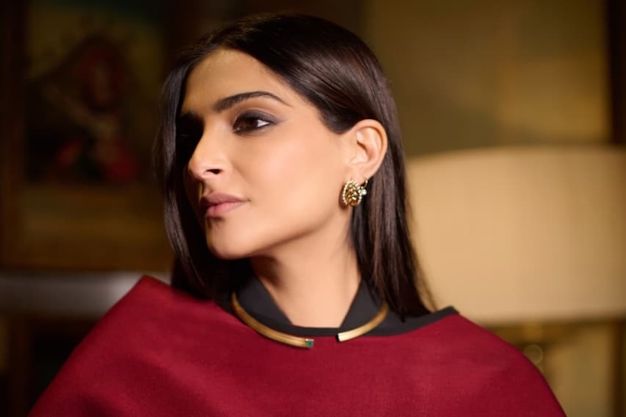 सोनम कपूर ने EAST ब्रांड के तांगखुल कशान-प्रेरित (Tangkhul Kashan-inspired) AKHA सेट को पहना, जिसे उनकी बहन रिया कपूर ने स्टाइल किया था।