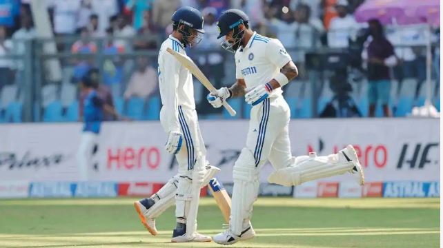 वानखेड़े स्टेडियम में कोहली बुरी तरह फॉर्म से बाहर थे और पहले दिन शून्य पर रन आउट हो गए, जब भारत न्यूजीलैंड की पहली पारी के आखिरी कुछ ओवरों में जीत हासिल करना चाहता था क्योंकि भारत ने सफलतापूर्वक ऐसा किया, जिसका श्रेय रवींद्र जड़ेजा के ऐतिहासिक 10 को जाता है। विकेट हॉल. जब भारत 147 रन जैसे छोटे लक्ष्य का पीछा कर रहा था, तब इसकी शुरुआत खराब रही। रोहित शर्मा एक अनजान शॉट के कारण जल्दी आउट हो गए, जिसके बाद शुबमन गिल आउट हो गए।