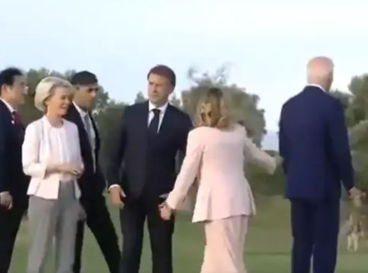 मुंबई, 14 जून, (न्यूज़ हेल्पलाइन)। इटली के फसानो शहर में हो रहे G7 समिट में दुनिया के बड़े मुद्दों पर चर्चा के लिए वर्ल्ड लीडर्स इकट्ठा हुए हैं। सबसे अमीर देशों के मंच से एकतरफ जहां जंग और आर्टिफिशियल इंटेलिजेंस के खतरों पर अहम बयान आ रहे हैं। वहीं, लीडर्स की मुलाकात के कुछ दिलचस्प और हैरान करने वाले मूमेंट्स सामने आए हैं। एक इवेंट में अमेरिकी राष्ट्रपति जो बाइडेन वर्ल्ड लीडर्स की पंक्ति से दूर चले गए। ऐसा लगा कि वे कन्फ्यूजन हो गए हैं या वे भटक से गए। वहीं, फ्रांसीसी राष्ट्रपति इमैनुएल मैक्रों की G7 की मेजबान जॉर्जिया मेलोनी से एक मुद्दे पर बहस हो गई। G7 लीडर्स ऋषि सुनक, ट्रूडो, इमैनुएल मैक्रों और जर्मन चांसलर ओलफ शोल्ज जॉर्जिया मेलोनी के साथ पैराग्लाडिंग देख रहे थे। पैराग्लाइडर आसमान से G7 का फ्लैग लेकर लैंडिंग करता है। जब वह लैंड करता है, तो सभी नेता उसका तालियों के साथ स्वागत करने लगते हैं। इस बीच बाइडेन दूसरी तरफ दूर जाकर किसी और को ही थम्स अप करते नजर आ रहे हैं। तभी कैमरा बाइडेन की तरफ फोकस करने लगता है। इतने में इटली की PM मेलोनी का ध्यान उलटी दिशा में जा रहे बाइडेन की तरफ जाता है और वे उनका हाथ पकड़कर वापस सभी लीडर्स की तरफ ले आती हैं। इसके बाद सभी नेता पैराग्लाइडर से बातचीत करने लगते हैं। बाइडेन के भटकने का यह वीडियो सोशल मीडिया पर वायरल हो रहा है।