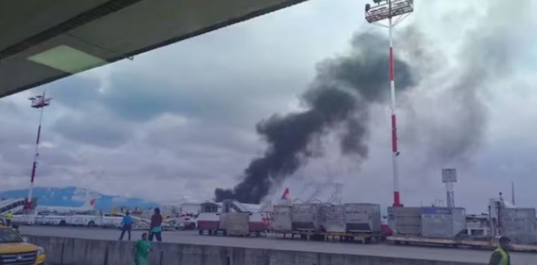 दुर्घटना के परिणामस्वरूप विमान से धुआं निकलता दिखाई दिया। दमकलकर्मी और सुरक्षाकर्मी मौके पर स्थिति को संभालने के लिए काम कर रहे हैं।