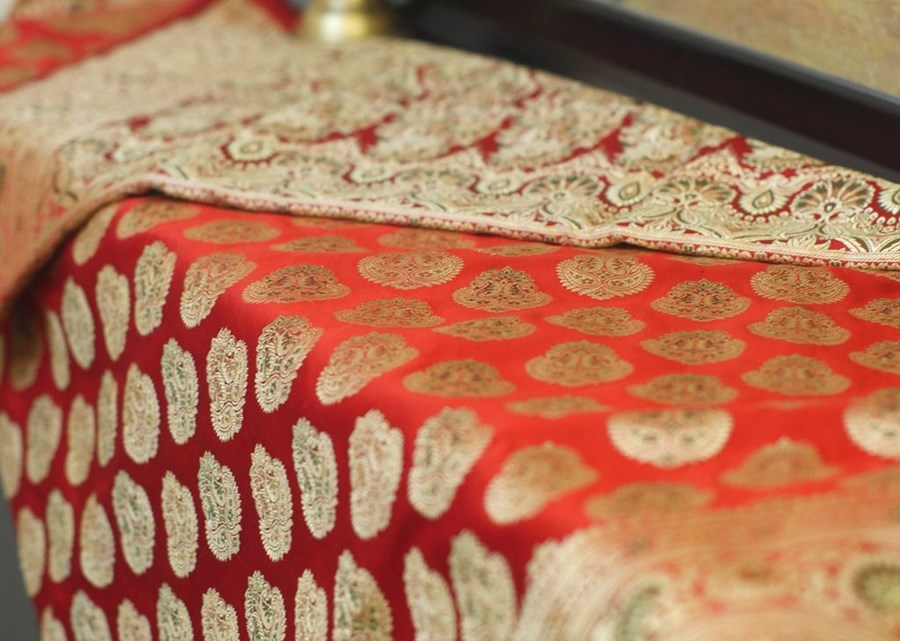 बनारसी साड़ियों को मूल रूप से शाही परिवार के लिए असली सोने और चांदी से बने धागों से सजाया गया था।