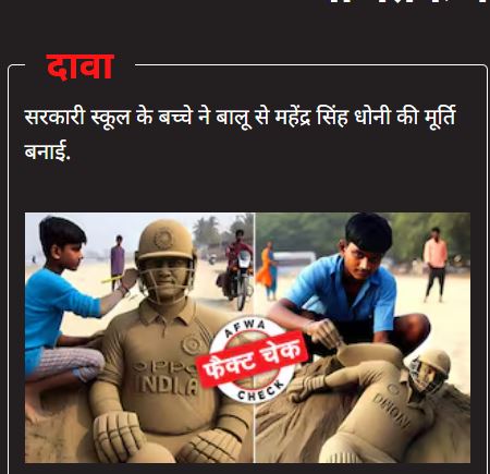 रेत से क्रिकेटर महेंद्र सिंह धोनी की मूर्ति बनाते एक बच्चे की तस्वीरें सोशल मीडिया पर खूब शेयर की जा रही हैं। बच्चे ने नीले रंग की शर्ट पहनी हुई है. कुछ तस्वीरों में वह अपने हाथों से मूर्ति को आकार देते नजर आ रहे हैं तो कुछ में वह ब्रश से मूर्ति पर पेंटिंग कर रहे हैं।