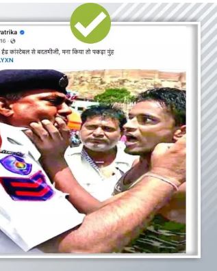 सोशल मीडिया पर वायरल हो रही तस्वीर, जिसमें एक शख्स पुलिसकर्मी का जबड़ा पकड़े हुए नजर आ रहा है, वह पश्चिम बंगाल की नहीं बल्कि राजस्थान के जोधपुर की है और साल 2016 की है। इसे क्फ संशोधन अधिनियम के विरोध प्रदर्शन से जोड़कर फैलाया जा रहा है, जो पूरी तरह फर्जी है।
