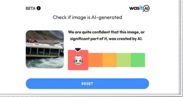 • टूल ने साफ बताया कि यह फोटो AI-Generated Image है यानी इसे किसी आर्टिफिशियल इंटेलिजेंस इमेज जेनरेटर जैसे DALL-E या Midjourney के माध्यम से बनाया गया है।