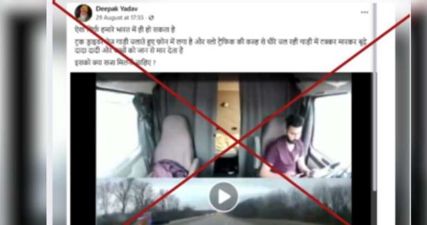 • दावा: भारत में एक ट्रक ड्राइवर ने मोबाइल इस्तेमाल करते हुए एक गाड़ी को टक्कर मार दी, जिसमें बुज़ुर्ग और बच्चों की मौत हो गई।