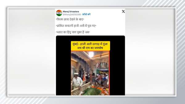 दरअसल, वायरल हो रहे वीडियो में कई लोगों को दरगाह के अंदर भगवा झंडे पकड़े, "जय श्री राम" के नारे लगाते और पूजा करते देखा जा सकता है। एक पूर्व यूजर ने वायरल क्लिप को शेयर करते हुए दावा किया, "छावा फिल्म देखने के बाद गुस्साए सनातनियों ने हाजी अली में प्रवेश किया। भारत के हिंदू अब जाग गए हैं।"