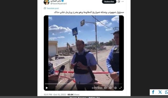 सबुक, ट्विटर (अब X), इंस्टाग्राम जैसे कई सोशल मीडिया प्लेटफॉर्म्स पर एक वीडियो तेजी से वायरल हो रहा है। इसमें एक व्यक्ति—जो इजरायली नेता बताया जा रहा है—मीडिया से बात कर रहा है। तभी अचानक सायरन बजता है और वह अन्य लोगों के साथ तेजी से भागता नजर आता है। दावा किया जा रहा है कि यह वीडियो ईरान के हालिया मिसाइल हमले के दौरान का है, और यह शख्स इजरायल सरकार का मंत्री है जो मौके से भाग निकला।