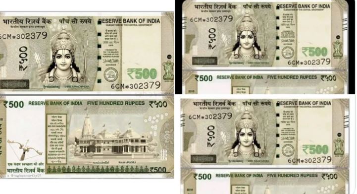 नोट पर राम मंदिर, रामलला की तस्वीर