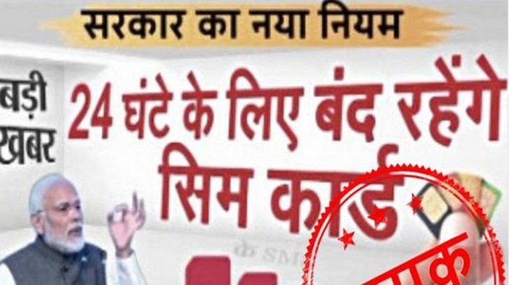 केंद्र सरकार के नए नियम के तहत सभी सिम कार्ड 24 घंटे के लिए ब्लॉक कर दिए जाएंगे। बता दें कि, आजकल सोशल मीडिया पर इस तरह के दावे किए जा रहे हैं । आपको बता दें कि, 'DLS News' नाम के एक #YouTube चैनल में इस बात का दावा किया जा रहा है कि, केंद्र सरकार के नए नियम के तहत सभी सिम कार्ड 24 घंटे के लिए बंद रहेंगे । मगर जब, पीआईबी ने फैक्ट चेक किया तो उन्होंने कहा कि, ये मैसेज पूरी तरह से फर्जी है । इस प्रकार यह संदेश पूर्ण नहीं है । ट्विटर पर शेयर किए गए मैसेज का स्क्रीन शॉट पोस्ट किया गया है जिसमें लिखा हुआ हैं कि, एयरटेल, जीयो, और वीआई के नए नियमों के अनुसार सिम कार्ड सेवाएं 24 घंटे के लिए बंद हो जाएगी ।