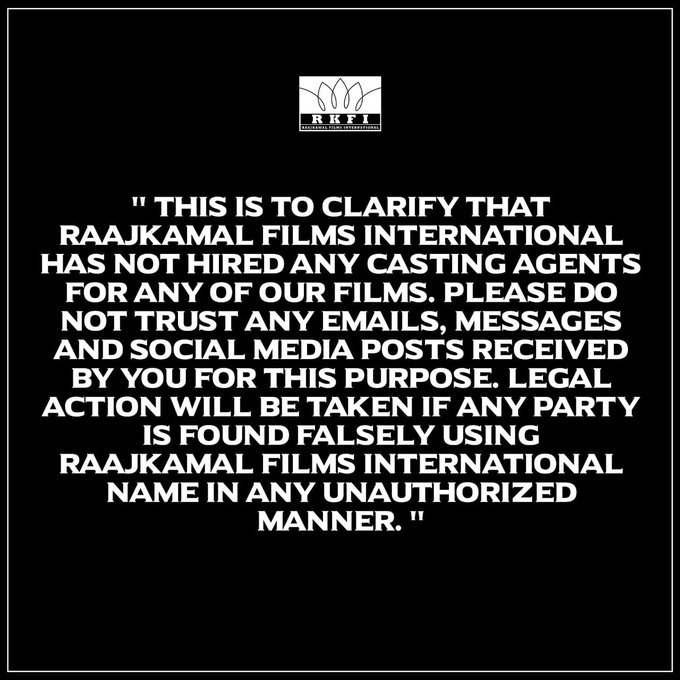 फर्जी कास्टिंग कॉल को लेकर राजकमल फिल्म्स इंटरनेशनल ने जारी की चे...