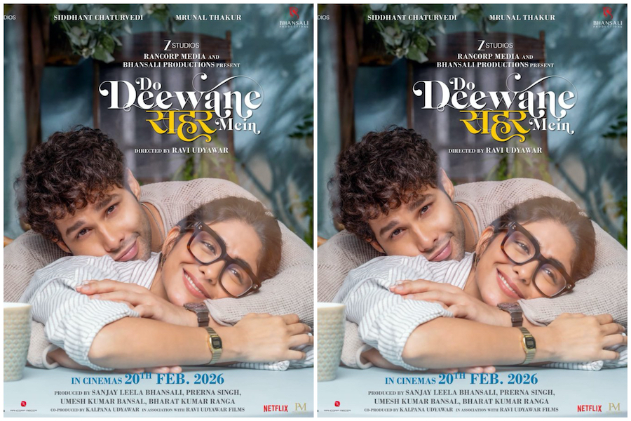 बॉलीवुड के 2026 के रोमांटिक कैलेंडर में नए साल का पहला बड़ा आकर्षण बनकर उभरी है फिल्म ‘दो दीवाने सहर में’। संजय लीला भंसाली औरज़ी स्टूडियोज़ के बैनर तले बनी इस फिल्म का फर्स्ट-लुक पोस्टर रिलीज़ होते ही सोशल मीडिया पर चर्चा शुरू हो गई है। पोस्टर में सिद्धांत चतुर्वेदीऔर मृणाल ठाकुर की जोड़ी बेहद कमाल की केमिस्ट्री के साथ नजर आ रही है, जो दर्शकों को एक फ्रेश और जोशीले ऑन-स्क्रीन रोमांस का वादादेती है। यह फिल्म 20 फरवरी, 2026 को सिनेमाघरों में रिलीज़ होगी, वैलेंटाइन वीक के दर्शकों के लिए परफेक्ट ट्रीट बनकर।