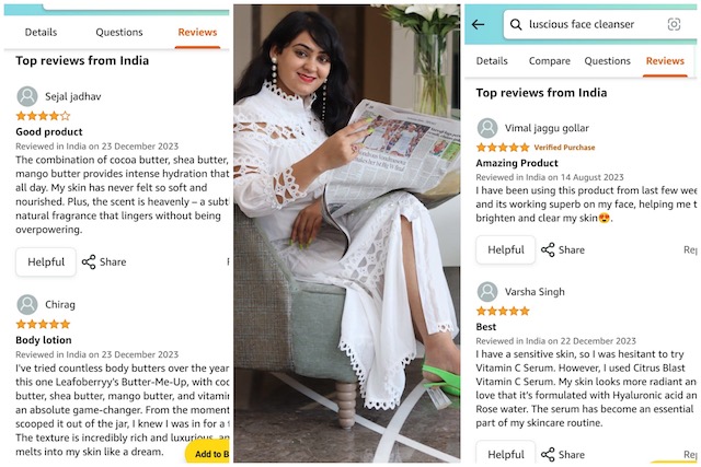 नवीनता के प्रति लीफोबेरी के समर्पण और विकसित होते सौंदर्य और त्वचा देखभाल परिदृश्य को अपनाने की वजह से हर तरफ से संतुष्ट ग्राहकों की सफलता कीकहानियां सुनने को मिल रही है। कई व्यक्तियों ने लीफोबेरी उत्पादों के उपयोग के माध्यम से बेहतर त्वचा स्वास्थ्य, आत्मविश्वास और आत्म-देखभाल के अपनेअनुभव को सब साथ शेयर किया है। इन ग्राहकों के पॉजिटिव रिव्यू ब्रांड के मिशन हर इंसान को प्राकृतिक सुंदरता को अपनाना और उनकी त्वचा में आत्मविश्वासमहसूस करने को और मजबूत करता है।
