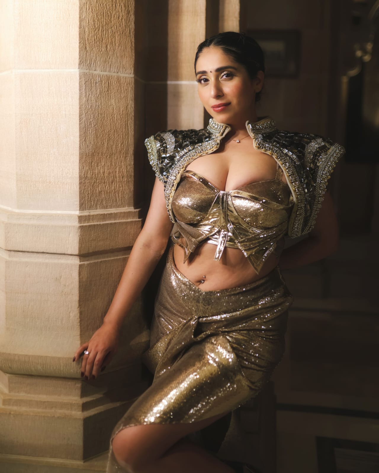 नेहा भसीन अपने गोल्डन शिमरी स्लिट आउटफिट में एकदम कमाल की लग रही है। उसका केप उनके लुक को को और अधिकगलेमरस बनाता है और उनका नेवल पियरसिंग भी शानदार दिख रहा है। लंबे समय से, नेहा भसीन पूरे आत्मविश्वास से नेवलपियरसिंग कर रही हैं और इसमें कोई आश्चर्य नहीं कि युवा इस तरह के बोल्ड और शक्तिशाली स्टाइल स्टेटमेंट से प्रेरित होते हैं।यही कारण है कि वह एक यूथ आइकन और सनसनी है और उन्हे एक कलाकार के रूप में उनकी टेलेंट के साथ-साथ उनके फेशनगेम के लिए भी उनको सम्मान और प्यार मिलता है। क्या आप स्वयं इन तस्वीरें देखना चाहते हैं?