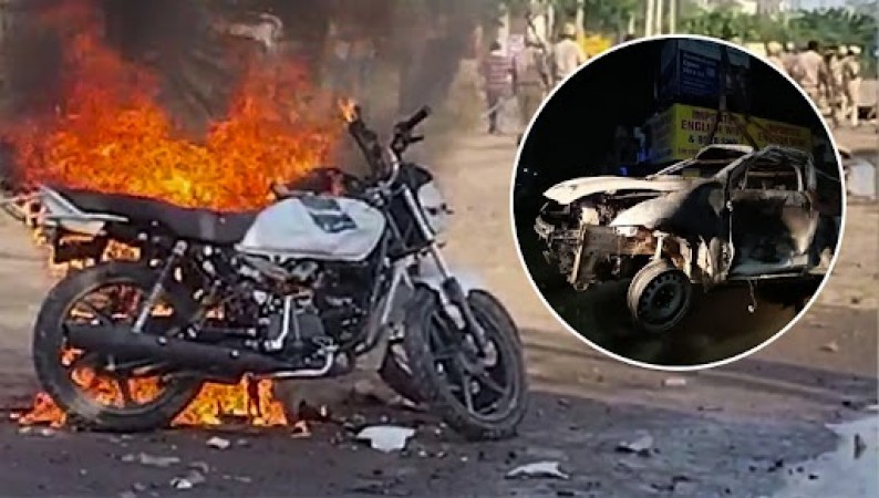 नूंह में भगवा यात्रा पर पथराव के बाद भड़की हिंसा, कई गाड़ियों को ...