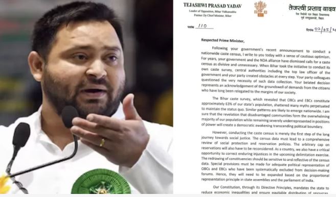 जातीय जनगणना पर तेजस्वी यादव ने पीएम मोदी को लिखा पत्र, आरक्षण को...