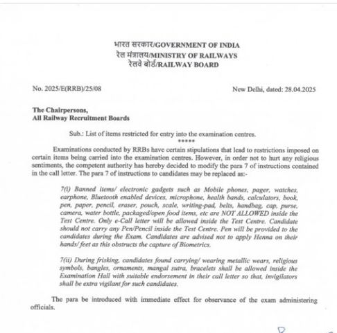 रेलवे परीक्षाओं में अब मंगलसूत्र और जनेऊ उतारने की जरूरत नहीं, रे...