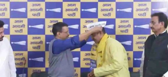 अरविंद केजरीवाल की मौजूदगी में बीजेपी के पूर्व विधायक अनिल झा आम ...