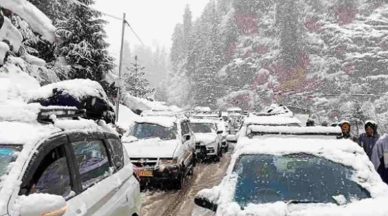 हिमाचल प्रदेश: भारी बर्फबारी के कारण मनाली में भारी ट्रैफिक जाम -...