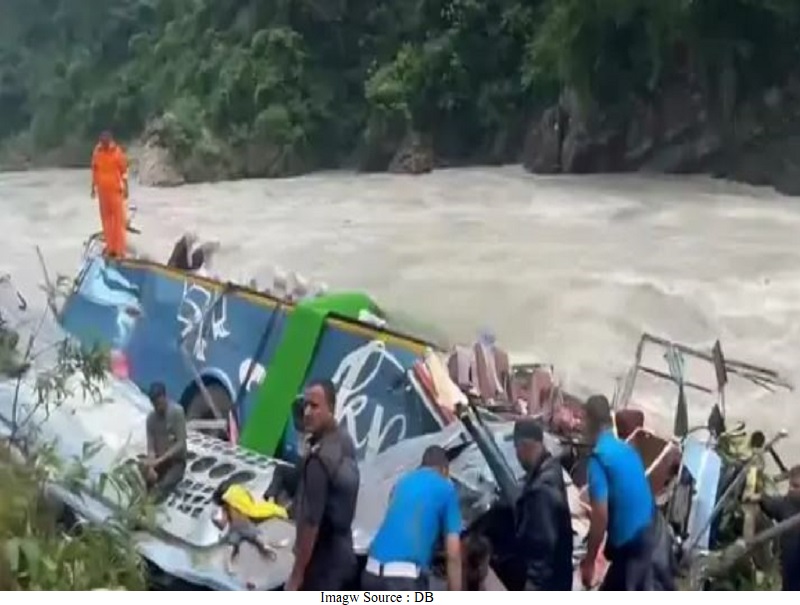 उत्तर प्रदेश के गोरखपुर की एक बस नेपाल की मार्स्यांग्डी नदी में ग...