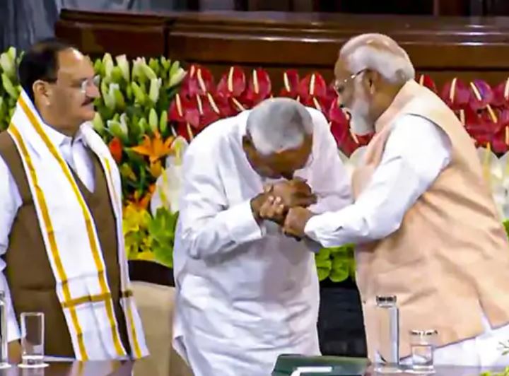 नीतीश ने कहा, मैं हमेशा मोदी के साथ रहूंगा, छुए पैर तो पीएम ने पक...