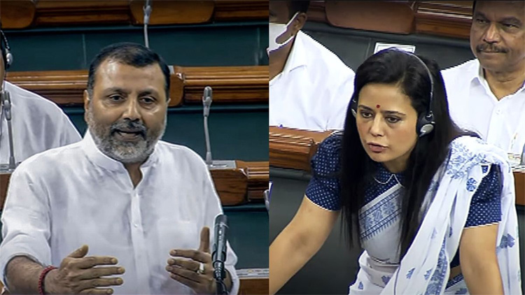 तृणमूल कांग्रेस सांसद महुआ मोइत्रा पर भाजपा सांसद निशिकांत दुबे क...