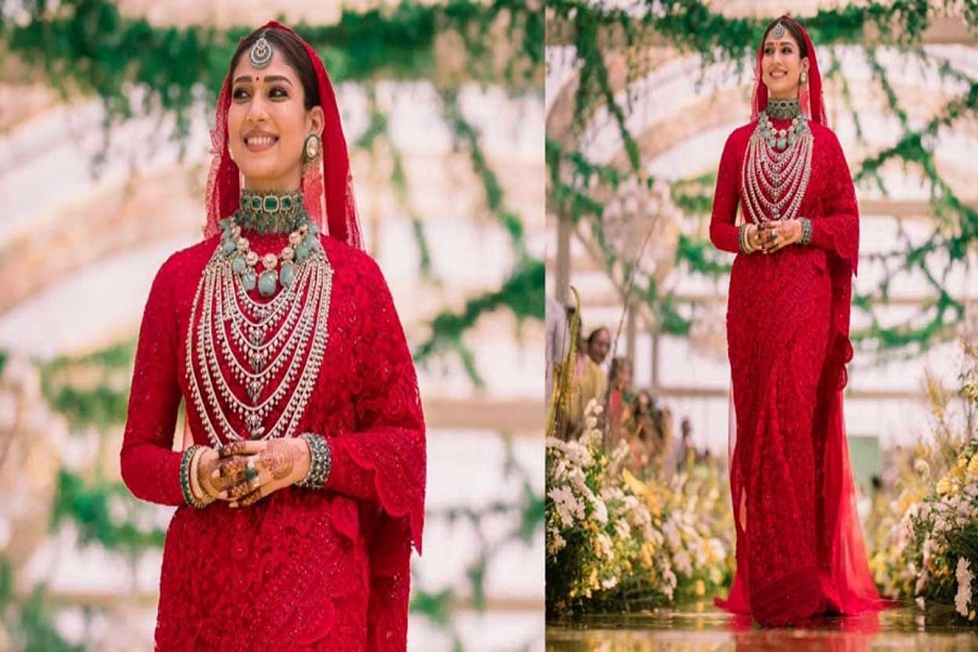 जेड की मोनिका शाह के अनुसार, अभिनेत्री लहंगा पहनने के बजाय साड़ी पहनना पसंद करती थी। इसलिए नयनतारा के पारंपरिक मूल्यों का जश्न मनाने के साथ-साथ, डिजाइनर ने उनके दुल्हन के पहनावे को एक समकालीन एहसास दिया। साड़ी में कली से लेकर पल्लू तक शामिल था, जिससे यह अधिक तरल और स्पर्शनीय हो गया।