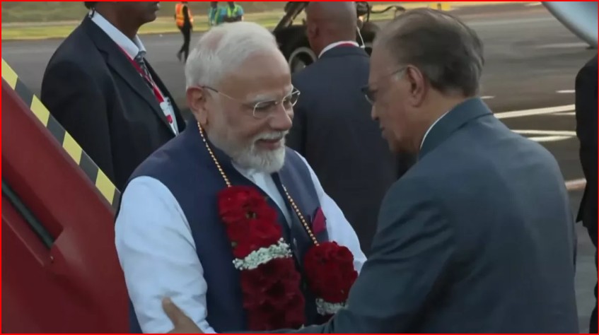 प्रधानमंत्री नरेंद्र मोदी अपनी दो दिवसीय आधिकारिक यात्रा पर मॉरीशस पहुंच गए हैं। पोर्ट लुईस अंतरराष्ट्रीय हवाई अड्डे पर पीएम मोदी का भव्य और गर्मजोशी से स्वागत किया गया। मॉरीशस के प्रधानमंत्री नवीनचंद्र रामगुलाम और वहां के वरिष्ठ अधिकारियों ने पारंपरिक तरीके से मोदी का अभिनंदन किया।