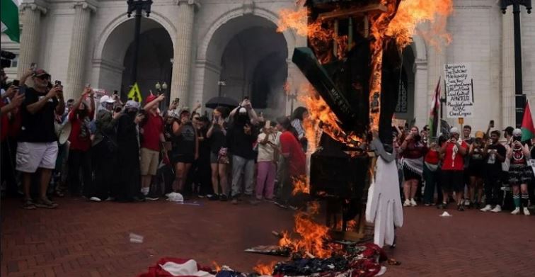 वाशिंगटन में नेतन्याहू के भाषण के खिलाफ अल्लाहु अकबर के नारे और अ...