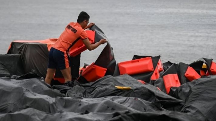 फिलीपीन तटरक्षक बल मनीला की सुरक्षा के लिए तेल रिसाव से लड़ रहा ह...