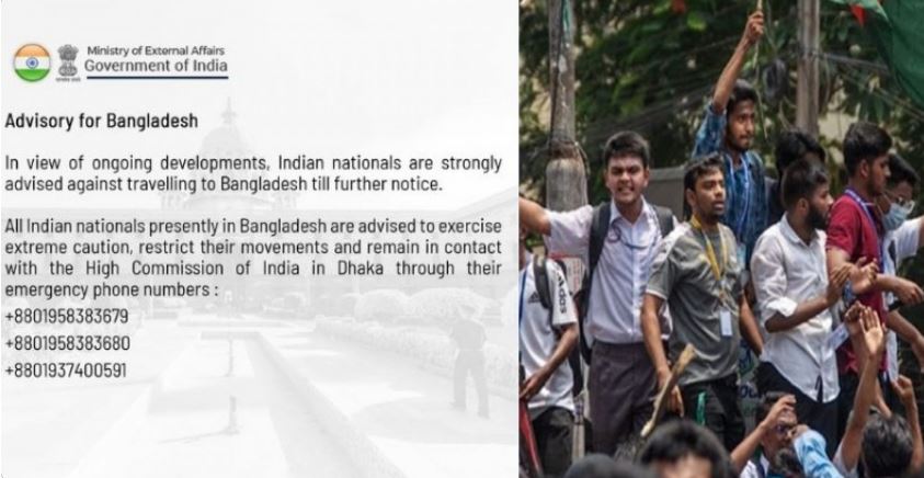 भारत सरकार ने अपने नागरिकों को जारी हिंसा के कारण अगली सूचना तक बांग्लादेश की यात्रा करने से बचने की सलाह दी है।