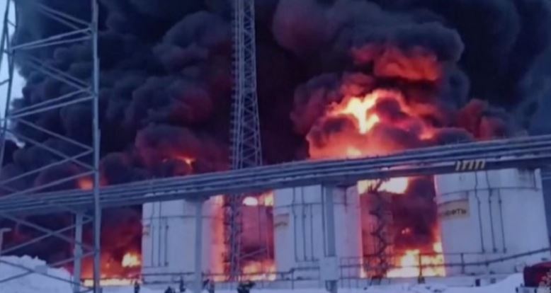 रूसी सोशल मीडिया पर साझा किए गए वीडियो में रात में बड़े टैंकों में आग लगते हुए दिखाया गया है, और एक वीडियो की पहचान रोस्तोव के कमेंस्की जिले के रूप में की गई है।