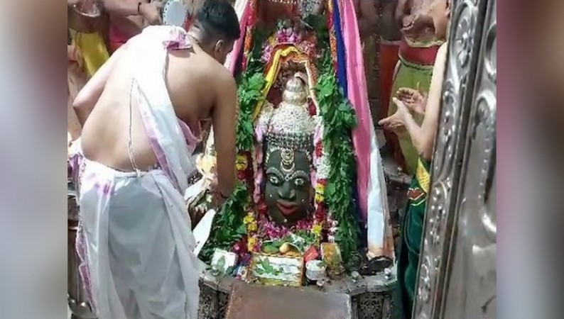 मध्य प्रदेश के उज्जैन जिले में स्थित महाकालेश्वर मंदिर में छठे श्रावण सोमवार को पूजा-अर्चना के लिए बड़ी संख्या में श्रद्धालु उमड़े। सुबह के शुरुआती घंटों में, भक्तों ने मंदिर में भगवान शिव का आशीर्वाद लेने के लिए कतारें लगाईं और बाबा महाकाल को समर्पित विशेष 'भस्म आरती' समारोह में भी भाग लिया।'भस्म आरती', यहां का एक प्रसिद्ध अनुष्ठान है, जो 'ब्रह्म मुहूर्त' के दौरान सुबह लगभग 3:30 से 5:30 बजे के बीच होता है।