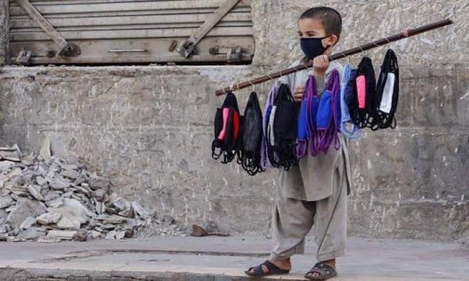 हकीकत ये है कि तस्वीर के साथ कोई भावनात्मक कहानी नहीं है। मामला पाकिस्तान के कराची का है। एक छोटा बच्चा उजबिल्लाह अपने भाई के साथ कराची की गलियों में मास्क बेच रहा है।