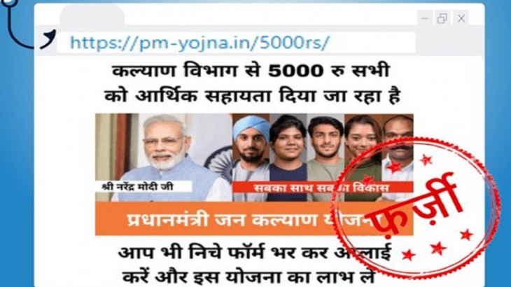 आजकल आए दिन सोशल मीडिया पर सरकारी योजनाओं को लेकर कई भ्रामक जानकारियां शेयर की जा रही हैं । इस जानकारी को देखकर आम जनता लालची हो जाती है और ठगी का शिकार हो जाती है । आपकी जानकारी के लिए बता दें कि, कुछ ऐसा ही दावा आजकल सोशल मीडिया पर किया जा रहा है जिसमें कहा जा रहा है कि, एक ऑनलाइन फॉर्म भरने के बाद प्रधानमंत्री लोक कल्याण विभाग की तरफ से सभी को करीब पांच-पांच हजार रुपये की आर्थिक मदद दी जाएगी और इतना ही नहीं, इस दावे के साथ वेबसाइट का यूआरएल भी शेयर किया गया है। यह https://pm-yojna.in/5000rs/ है । मगर जब, पीआईबी फैक्ट टीम ने इस वायरल मैसेज का पता किया तो ये दावा पूरी तरह से फर्जी निकला ।